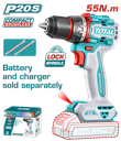 TALADRO ATORN A BATERIA 20V 55NM (COMPACTO)- SIN BAT - TDLI204531 - TOTAL