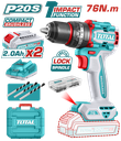TALADRO ATORN A BATERIAS 20V 66NM BL - 2BAT/CAR - TDLI20668 - TOTAL