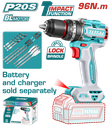 TALADRO DE IMPACTO (PERCUTOR) A BATERIA 20V 96NM BL - SIN BAT - TIDLI209681 - TOTAL